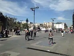In 1913 at the corner of Seminario and Escalerillas, Manuel Gamio detected one of the corners of the Mexica Templo Mayor. In 1924 it was decided to modify the site to turn it into a square, widening the sidewalk, installing planters, some public bathrooms that remained until 1972 and a fountain dedicated to Fray Bartolomé de las Casas, today next to the cathedral but inside its bars.[2] In 1933 both the building of the former Seminary and the adjacent one of the Colegio de Infantes were demolished.[2] The site was intervened again around 1944 to remove debris that still remained in the area and with the aim of giving a better urban image to the adjacent cathedral.[2] With the works of Line 2 of the Mexico City Metro, the so-called Plaza del Seminario was intervened again, removing the bathrooms and some gardens installed on the sides of the cathedral.[2]