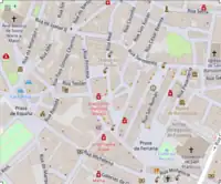 Its commercial premises are mostly textile or hotel establishments. The famous Almacenes Clarita textile shop opened in 1916.[13] The square is located next to the Convent of St. Francis and the small squares of the Estrella (700 m2), and Orense (700 m2), as well as the 1,000 m2 Casto Sampedro square.
