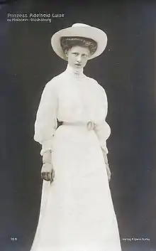 Princess Adelaide Louise of Schleswig-Holstein-Sonderburg-Glücksburg (German: Adelheid Luise; 19 October 1889 – 11 June 1964) was a daughter of Friedrich Ferdinand, Duke of Schleswig-Holstein and his wife Princess Karoline Mathilde of Schleswig-Holstein-Sonderburg-Augustenburg.[1]