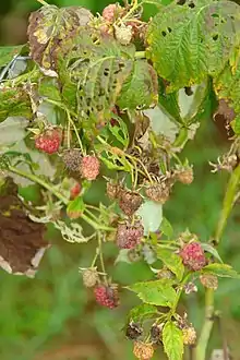 - ↑ Luffman, Margie; Buszard, Deborah (1988). "CONTROL OF LATE YELLOW RUST [Pucciniastrum americanum (Farl.) Arth.] OF RED RASPBERRY". Canadian Journal of Plant Science. 68 (4): 1185–1189. doi:10.4141/cjps88-147.