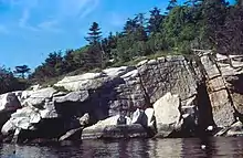 Ragged Island provides habitat for a large and diverse population of nesting seabirds, including the eider duck, black guillemot, greater black-backed gull, herring gull and osprey. Maine Coast Heritage Trust led an effort to protect the island, and in 2008 the U.S. Fish and Wildlife Service’s National Coastal Wetlands Conservation Grant program awarded a $323,000 Coastal Wetland grant to purchase a conservation easement on the property. The easement, held by Maine Coast Heritage Trust, permanently protects the 76.6-acre (310,000 m2) natural area used by seabirds for nesting on Ragged Island.[3]