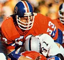 Randy Charles Gradishar (born March 3, 1952) is an American former professional football player who was a linebacker in the 1970s and 1980s for the Denver Broncos of the National Football League (NFL). A native of Ohio, Gradishar was a one-time consensus and one-time unanimous All-America for the Ohio State Buckeyes, before playing ten seasons for Denver, where he was the centerpiece of their "Orange Crush Defense".