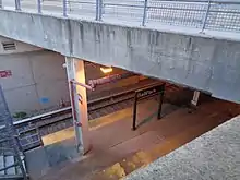 There are no turnstiles at this station. It is served by a one-track wye which extends from St. George to the southern (geographically eastern) trackway of the station's island platform. Bumper blocks are present at the end of the station, though the wye continues to the end of the ballpark parking lot where it ends at a second set of bumper blocks. This section originally was electrified but is no longer powered. After the abandonment of the station, the sole track is used to store locomotives. The northern trackway currently has no track and is unused.[7]