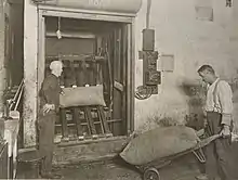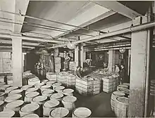 The fire spread to the third floor of the shipping department which stored raw ingredients including cocoa and butter.[4] Firefighting water washed a mixture of this material and molten chocolate onto Flushing Avenue.[2][5][6] The sugar and butter separated from the mixture and formed a crust that blocked the street's storm drains, leading to a flood.[2] The mixture became greasy and slippery as it cooled, which hindered the movements of the firemen.[4]