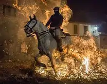 Each year on January 16, the eve of the festival of Saint Anthony, the town celebrates the traditional Luminarias festival.[2] Purportedly held for five centuries, the origins of the festival trace back to a ritual purification to preserve the health of the horses in the village.[3] Bonfires are lit in the central streets, and horses jump through the flames, with the smoke intended to protect the animals from disease.