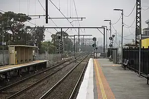 ![]() Eastbound view from Platform 2 in May 2023 | |||||||||||||||||||||||||||||||||||||||||||||||||||||||||||||||||||||||||||||||||||||||||||||||||||||||||||||||||||||||||||||||||||||||||||||||||||||||||||||||||||||||||||