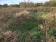 The site of the moat, now heavily overgrown and hard to make out