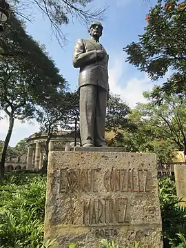 A statue of Enrique González Martínez is installed along the Rotonda de los Jaliscienses Ilustres, in Centro, Guadalajara, in the Mexican state of Jalisco. The statue was unveiled on the 100th anniversary of his birthday, on 13 April 1971.[1]