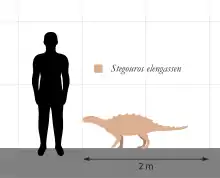 Stegouros is a very small ankylosaur. It was estimated at to be about 1.8–2 metres (5.9–6.6 ft) long.[1]