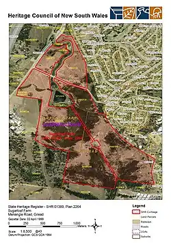1. 1 2 3 4 5 6 7 8 9 10 11 12 13 14 15 16 17 18 19 20 21 22 23 24 25 26 27 28 29 30 31 32 33 34 35 36 37 38 39 40 41 42 43 44 45 46 47 48 49 50 51 52 53 54 55 56 57 58 59 60 61 "Sugarloaf Farm". New South Wales State Heritage Register. Department of Planning & Environment. H01389. Retrieved 2 June 2018. Text is licensed by State of New South Wales (Department of Planning and Environment) under CC-BY 4.0 licence.