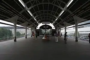 Teletsentr (Russian: Телецентр) is a station of the Moscow Monorail. It is located in the Ostankinsky District of the North-Eastern Administrative Okrug of Moscow. The station is called after the Ostankino Technical Center (Телецентр «Останкино») which is located nearby together with Ostankino Tower.