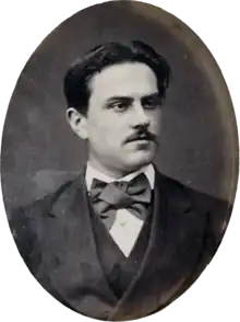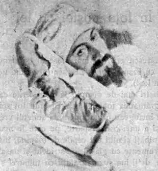The former separatist was survived by daughters Esmeralda (or Smaranda; married Ceaur-Aslan), Eugenia (Brăilescu), and Olga. In early 1893, the three of them had successfully sued the Ministry of Agriculture over a deposit their father had made for a land purchase in Oșlobeni.[155] Aged 25 in 1896, Olga had been married off to a cousin, George Lățescu. Olga left him in March 1896, opting to live as a courtesan in Bucharest,[156] though she was also reportedly married to an architect, Nicolae Gabrielescu.[157] She then met Ioan Șabechi, a confidence man, together with whom she blackmailed, or simply robbed, Gabrielescu. This affair, "reported on by all contemporary newspapers",[158] resulted in Olga's arrest.[156][159] A defense team, comprising N. Ceaur-Aslan, Alexandru Djuvara, and Barbu Ștefănescu Delavrancea, obtained that she be seen as a person of diminished competence, or "great hysteric"; she was finally sentenced to one year in prison.[160] The Boldur–Gabrielescu affair was retold in a romanticized reportage by Ion Luca Caragiale, who depicted the architect victim as a "gullible bohemian".[158]