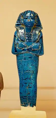 Ushabti of pharaoh Seti I (ruled 1290–1279 BC). Blue faience (H. 26 cm), from Thebes, Reign of Seti I, 19th dynasty, New Kingdom