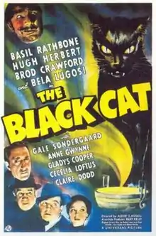 The Black Cat is a 1941 American comedy horror and mystery film directed by Albert S. Rogell and starring Basil Rathbone. The film was a hybrid of style: being inspired by comedy "Old Dark House" films of the era as well as the 1843 short story "The Black Cat" by Edgar Allan Poe. It stars Basil Rathbone as Montague Hartley, the head of a greedy family who await the death of Henrietta Winslow (played by Cecilia Loftus) so that they can inherit her fortune. When she is found murdered, an investigation begins into who might be the culprit. Alongside Rathbone and Loftus, the film's cast includes Hugh Herbert, Broderick Crawford, and Bela Lugosi.