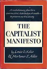 The Capitalist Manifesto is a 1958 book by Louis O. Kelso, a lawyer-economist and Employee Stock Ownership Plan (ESOP) inventor, and Mortimer J. Adler, a neo-Thomist philosopher. Kelso and Adler detail the three principles of economic justice, Participation, Distribution, and Limitation. These principles laid the foundation of what eventually came to be called binary economics. The term "binary" comes from attributing all production (participation) and just distribution of income to two factors, the human, classified as labor, and the non-human, classified as capital. In the Preface, Adler acknowledged Kelso as the originator of the theory.