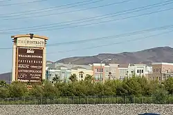 The project, known as The Shops at Green Valley Ranch, received final city approval in December 2002.[6] The city's zoning codes had to be altered to allow for the project to proceed. It was designed by Perlman Architects,[7] with McCarthy Building Companies as the general contractor.[8][9] Construction on the $80 million project was underway in early 2003.[10] The project's location was considered desirable, being situated beside the Las Vegas Beltway.[11][12] In March 2004, a name change was announced: The District at Green Valley Ranch. The new name was chosen to reflect the project's wide array of features other than shopping.[11][13]