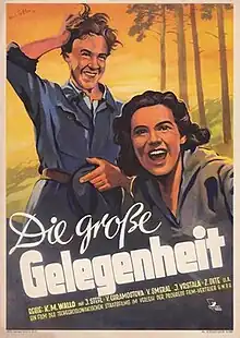 The Great Opportunity (Czech: Veliká prílezitost) is a 1950 Czech drama film directed by Karel Michael Wallo and starring Vlasta Chramostová, Vladimír Smeral and Zdenek Díte.[1] [2] [3] It was shot at the Hostivar Studios in Prague. The film's sets were designed by the art director Karel Skvor. It was distributed in East Germany by Progress Film