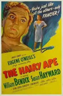 The Hairy Ape is a 1944 American drama film based upon the 1922 play of the same name by Eugene O'Neill. It was directed by Alfred Santell and adapted by Robert Hardy Andrews and Decla Dunning. The film stars William Bendix, Susan Hayward, John Loder, Dorothy Comingore, Roman Bohnen, Tom Fadden and Alan Napier. The film was released on July 2, 1944, by United Artists.[1][2]