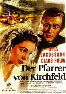 The Priest from Kirchfeld (German: Der Pfarrer von Kirchfeld) is a 1955 West German drama film directed by Hans Deppe and starring Ulla Jacobsson, Claus Holm and Annie Rosar.[1] It is based on the play Der Pfarrer von Kirchfeld by Ludwig Anzengruber.