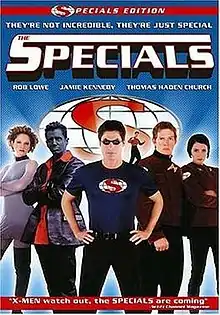 The Specials is a 2000 American superhero comedy film directed by Craig Mazin and written by James Gunn. It stars an ensemble cast, featuring Thomas Haden Church, James Gunn, Rob Lowe, Jamie Kennedy, Judy Greer, Sean Gunn, Paget Brewster, Jordan Ladd, Jim Zulevic and Kelly Coffield.[2]