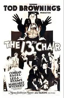 The Thirteenth Chair is a 1929 American mystery film directed by Tod Browning. The picture is based on a 1916 play of the same name by Bayard Veiller. It stars Conrad Nagel, Leila Hyams and Margaret Wycherly.