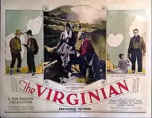 The Virginian is a 1923 American silent Western film based upon the 1902 Owen Wister novel The Virginian and adapted from the popular 1904 theatrical play which Wister had collaborated on with playwright Kirke La Shelle.[1] The film stars Kenneth Harlan as the Virginian and Russell Simpson as Trampas and was directed by Tom Forman. With the advent of talkies, the film was soon overshadowed by the 1929 motion picture The Virginian with Gary Cooper and Walter Huston.[2]