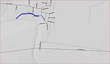 Another tributary to Rocky Brook that runs nearby is also called Timber Run.[2] This one starts in the middle of a field between Lake Drive and the original alignment of Milford Rd. It flows west-northwest to a point behind a restaurant located a few hundred feet east of the New Jersey Turnpike. From there, the creek turns west-southwest, and continues until it drains into a narrow recessed section of Peddie Lake. Much of this stream is culverted, and parts of its route are diverted around local businesses and Interchange 8 of the Turnpike.