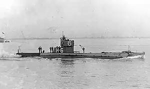 USS H-6 (SS-149) was a H-class submarine originally built for the Imperial Russian Navy. Six of these were not delivered pending the outcome of the Russian Revolution of 1917 before being purchased by the United States Navy on 20 May 1918.
