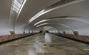 Uralmash (Russian: Уралмаш) is a station of the Yekaterinburg Metro located on the 1st line between the stations Prospekt Kosmonavtov (Yekaterinburg Metro) and Mashinostroiteley. It opened on April 27, 1991 as part of the first launch section of the Yekaterinburg metro "Prospekt Kosmonavtov." It got its name from the nearby Uralmash plant.