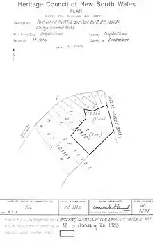On 25 November 1986 the Heritage Council recommended placing a Permanent Conservation order over Warby's Barn and Warby's Stable. Public notice was given of the proposal to place a Permanent Conservation Order. The Heritage Council received an objection to the extent of the listing.[1]