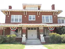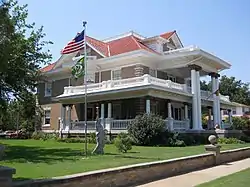 The T. T. Eason Mansion (36°23′47″N 97°53′38″W / 36.39639°N 97.89389°W) and the McCristy-Knox Mansion (36°23′47″N 97°53′40″W / 36.39639°N 97.89444°W) are also located within the district, and were both owned by wealthy oilmen. Both of these mansions were listed on the NRHP in 1987. T.T. Eason of Eason Oil Company purchased his house following original owner John W. Graham's death.[3] Graham had the Prairie Box style house constructed in 1916,[3] and Eason lived in it from 1923 to 1935.[2] Charles E. Knox, who owned a refinery in Covington, Oklahoma, purchased his mansion from Joseph McCristy, president of the Enid Mill and Grain Company. The mansion was built in 1909 in the Neo-Classical style and designed by R.W. Shaw.[3] Knox also owned another site listed on the National Register of Historic Places, the Knox Building. Musician Michael Hedges also lived in the house with his family.[4]