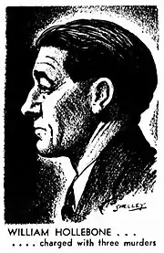 Hollebone was tried for the murder of Alfred Dawes on December 12 and 13, with the barrister George Amsberg conducting Hollebone's defence. During Amsberg's cross-examination of Josie Dawes he introduced the subject of the sheets, with Mrs. Dawes claiming she had collected them from the police and returned them to the neighbour. Amsberg then encouraged her to declare she was sure of that – and she was just as certain that Hollebone was the man who murdered her son. At this point Amsberg revealed the details of what had actually happened to the sheets, exposing Mrs. Dawes' false testimony and adding "to the confusion between the witnesses about identifying Hollebone".[35] At the conclusion of the trial Hollebone was acquitted by the jury after a retirement of only ten minutes. After the verdict the judge remarked to the jury: "I suppose you feel with me that it was extraordinary that, although there were eight or more people in this house... no responsible citizen considered it his duty to come forward, give evidence, or say who was responsible for it, and see that justice was done". In summing up the judge added, "Evidence against the accused makes it gravely suspicious that he was concerned in it, but that does not make it beyond any reasonable doubt". Immediately after his acquittal Hollebone was charged with the murders of Marjorie Nurse and Douglas Graves.[36][37] However, the additional murder charges were eventually dropped, with the Attorney-General entering a nolle prosequi (a formal notice of abandonment by a prosecutor of the charges). A further charge of having used an unlicensed pistol was also dismissed and Hollebone was discharged from custody on 17 January 1947.[38]