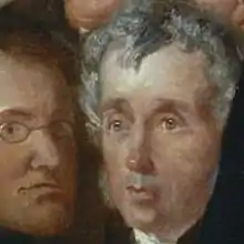 ![]() François-André Isambert is to the left and Leatham is to the right in a conference crowd - detail from an 1841 painting.[1] | |