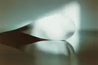 Tillmans further explores the bounds of photography as a medium in his “paper drop” series (2001–08). He started to make ‘paper drop’ images depicting photographic paper specifically exposed to coloured light in his darkroom in 2001.[29] He creates extraordinary sculptural forms in photographic paper; then, by photographing them, returns them to the accustomed flatness of that medium. Photography’s step from ‘picture’ to ‘object’ is best demonstrated in the works from the “Lighter” Series (2005–08),[30] in which the artist dropped the act of photographing and allowed the photographs - in their three-dimensional form – to only represent themselves,[31] recalling his ongoing series "Impossible Color" (1996–present). These colourful photo-paper works are folded, creased or otherwise manipulated, allowing for a subtle play with the material surface and the resulting illusion of lines and contrast. Contained under plexiglas lids, they have a rather sculptural quality.[32]