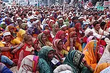 The new wave of feminism in the 1970s was in response to gender inequality issues and stagnant development in India.[39] The Committee on the Status of Women in India released a report in 1974, and had a significant influence in the reemergence of activism towards gender equality. The report highlighted the significant differences between men and women in India, including the disparity in the sex ratio, mortality rates, employment, literacy, and wage discrimination. The report fueled the women's movement by signifying the ongoing discrimination towards women in India.[40] Gender inequality has remained the focus of the women's movement with specific emphasis on issues such as the Uniform Civil Code, Women's Reservation Bill, and sexual violence against women.[41] Women's organizations both informal and formal have developed at the rural, urban, national, and state levels in India. Women's organizations in India address a variety of issues from the environment, poverty, empowerment, and violence against women.[42] One of the most prominent women's organizations in India is the AIWC, which was established in 1927, focusing on empowering and educating Indian women. The AIWC has over 100,000 members and 500 branches in India, and has helped with the passage of the Sarda Act, Maternity Benefit Act, and Hindu Code Bills.[43][44]