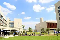 The school moved to its new campus in February 2015. The campus includes teaching buildings, a swimming pool and boathouse, a theatre building, indoor basketball and tennis courts and outdoor sports facilities consisting of a stadium with a grass sports field.