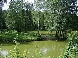 Landmarks in the town include the school, Railway station, and the Roman Catholic parish of St. Hubert. The town lies adjacent to the Chojnów Landscape Park.